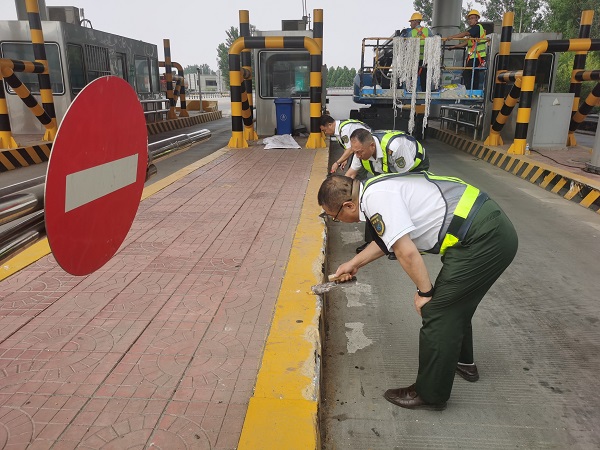为将纪律要求转化为实干行动,支部组织党员开展 “路域环境整治先锋行动”。在收费站广场、车道,党员们手持铲子、抹子等工具,对收费车道、安全岛等区域漆面进行深度清理,为司乘营造整洁畅通的通行环境。