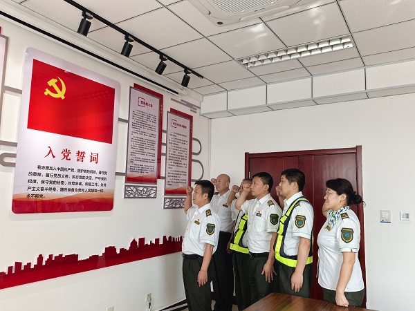 观影结束后,在党支部书记孙克瞳的带领下,全体党员整齐列队,庄严地举起右拳,重温入党誓词。“我志愿加入中国共产党,拥护党的纲领,遵守党的章程……”铿锵有力的誓言在现场回荡,每一位党员都用真挚的声音表达了对党忠诚的决心,坚定了为党的事业奋斗终身的信念。