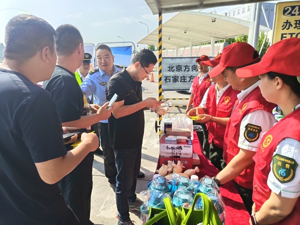 政策宣讲区:发放“双节”高速出行指南,详解 10 月 1 日-8 日小客车免费通行政策;手把手指导司乘扫码注册“冀交万里行”“京石易行”会员,演示电子票据获取步骤,耐心解答纸改电政策疑问,累计引导30余名物流司机完成会员注册。