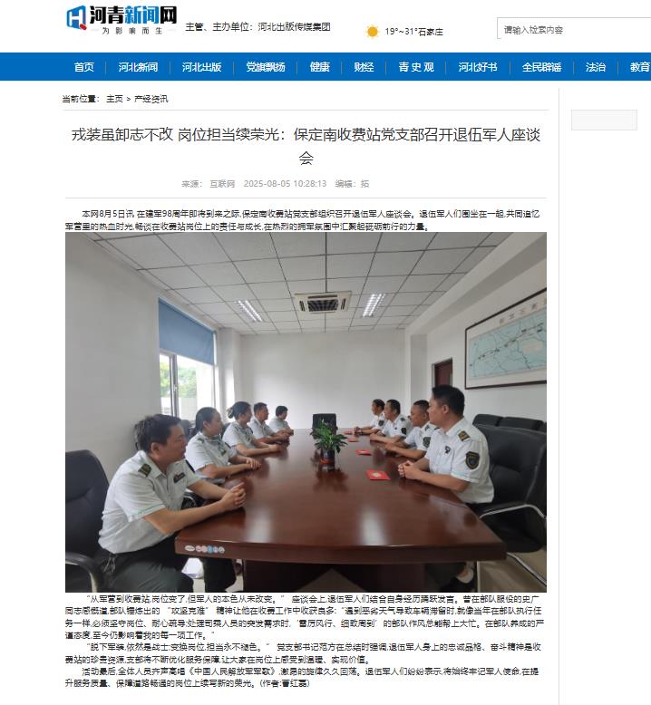 【河青新闻网】戎装虽卸志不改 岗位担当续荣光:保定南收费站党支部召开退伍军人座谈会