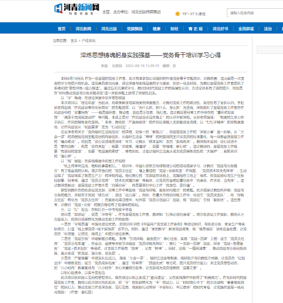 【河青新闻网】淬炼思想铸魂躬身实践强基——党务骨干培训学习心得