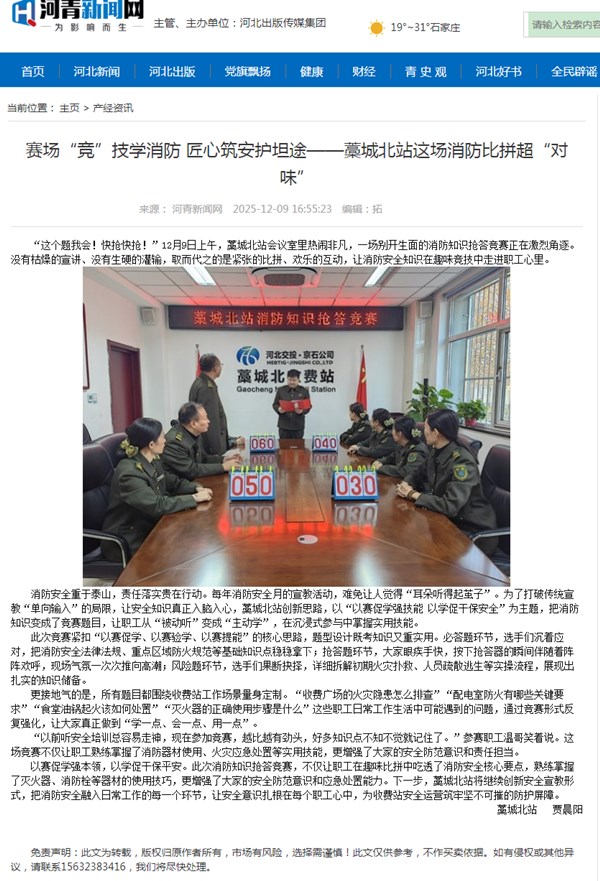 【河青新闻网】赛场“竞”技学消防 匠心筑安护坦途——藁城北站这场消防比拼超“对味”