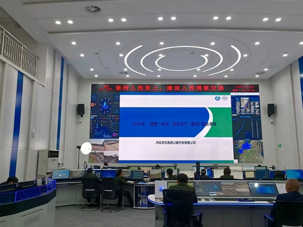 演练模拟场景设定为11月3日9时30分,接到省气象服务中心发布的大雾黄色风险预警,提示京石高速定州南至望都段出现能见度低于200米的大雾天气。接到预警后,京石公司联合指挥中心迅速启动应急预案,第一时间发布预警信息,调度路面执勤警车、高速救援车辆及养护工区压车带道车就位待命,并通过沿线情报板、交通广播、手机导航平台及“京石抖音号”等渠道,广泛发布路况提示,引导公众合理规划出行。