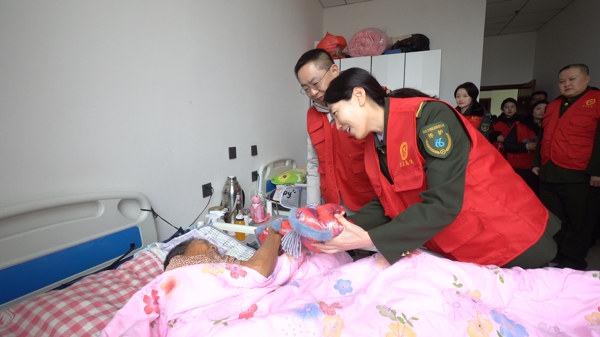 活动伊始,志愿者们走进病房,探望行动不便的老人,为他们送上精心准备的马年“吉祥物”,细致入微了解老人的身体状况和生活需求。