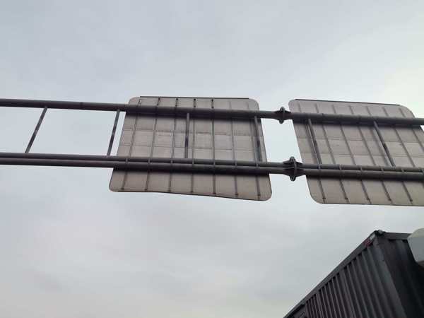 养护巡查人员立即将相关情况进行了汇报,并现场拍照取证、标注桩号、划定危险区域。工区接到汇报后高度重视,因此次施工需在石黄高速主路进行作业,工区经多次电话沟通协商石黄高速交警大队、高速路政部门后,工区立即安排已准备好的设备与人员上路进行作业,养护作业人员严格按照安全作业规范,架设警示标识、布设安全作业区,使用专业设备对变形标牌进行临时加固、校正复位,对变形严重的出口提示牌进行拆除,并全面检查基座、连接件与支撑结构,彻底消除倾倒风险。整个处置过程规范高效、衔接顺畅,在最短时间内完成隐患清零。