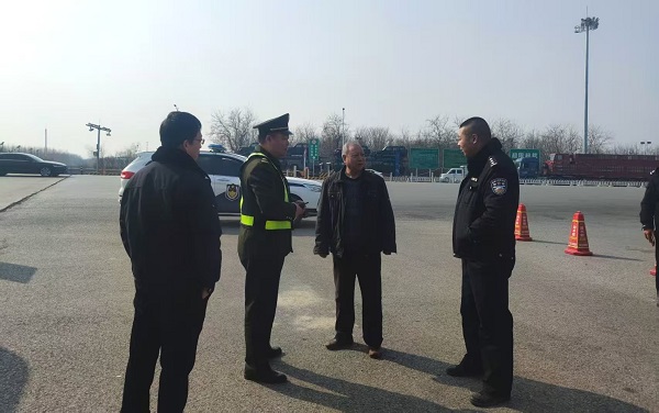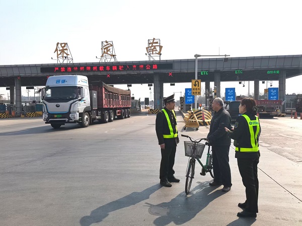 2月27日中午1时许,保定南收费站工作人员在疏导入口车辆时,发现一位白发老人正推着自行车在收费砸道徘徊。值班班长葛海涛迅速带领两名同事上前,将老人引导至安全区域。