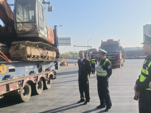 高速交警与高速路政抵达现场,协同收费站仔细查验车辆的相关手续和装载货物。在多放联合查验下,司机所提供的大件运输证与装载货物存在明显不符,证据确凿无疑。在铁证面前,司机终于不再狡辩,调头驶离广场。