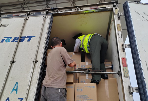“查验必须较真,不能留漏洞!”陈立宾义正言辞,敏捷爬进车厢。一探究竟,问题暴露:车厢中间看似堆实的纸箱,实则仅外层码放,中间竟空出半人高的“架子”,从门口根本难察觉。他爬下车,向司机直指问题:“所谓‘容积达标’是障眼法,根本不符合绿通免费条件!”