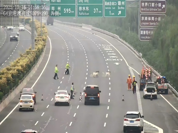 10月16日下午14时35分,京石高速石家庄方向距高碑店站1公里处的第一车道内,多只活羊突然闯入,它们在车流中窜动,不仅占用核心通行车道,更对过往车辆的行驶安全构成严重威胁,高速通行秩序瞬间面临考验。