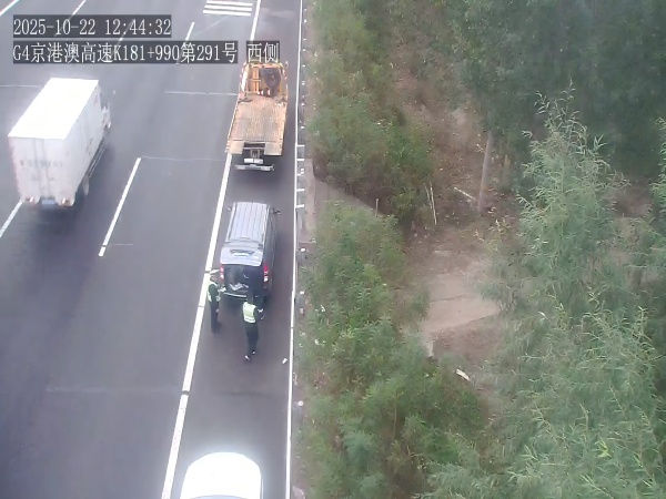 10月22日12时31分,京石高速智慧调度中心的智能视频感知平台精准识别到一辆小型客车停在第一车道。经视频监控进一步查看,发现司机正在第一车道内更换轮胎,且未设置任何警示标志,后方车流已开始缓行,情况十分危急。