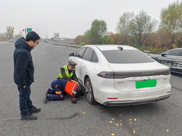 由于该车为新能源车型,未配备备胎,司机一时不知所措。工作人员耐心安抚其情绪,并协助联系车辆4S店请求专业救援。在等待期间,工作人员全程值守,积极疏导周边车流,确保救援区域安全有序。约30分钟后,4S店救援人员抵达现场,收费站工作人员主动配合,协助完成轮胎更换作业,帮助车辆恢复行驶条件。临行前,司机对收费站工作人员热情周到的帮助连连致谢。他表示:“在人生地不熟又突发状况的时刻,能得到这样及时、温暖的帮助,真的非常感动。”