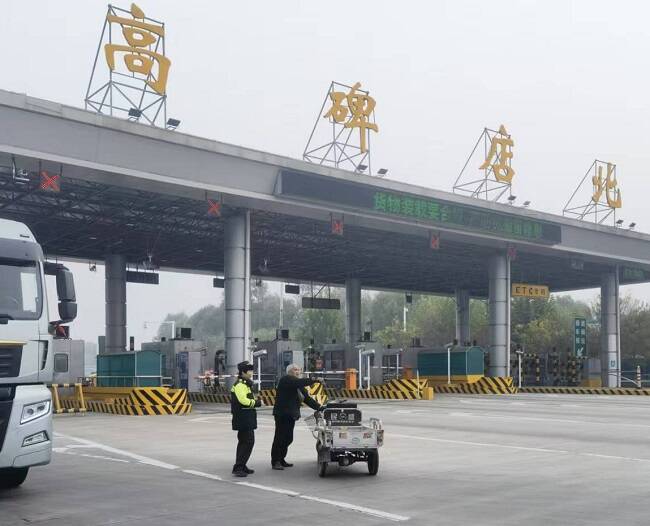 11月10日10时13分,高碑店收费站外广场的车流里,一抹蹒跚的身影格外醒目——一位老人茫然驻足,在往来车辆间显得局促无措。当班人员的目光,第一时间捕捉到了这份“异常”,几乎是下意识地快步上前,在安全区域拦下了老人。
