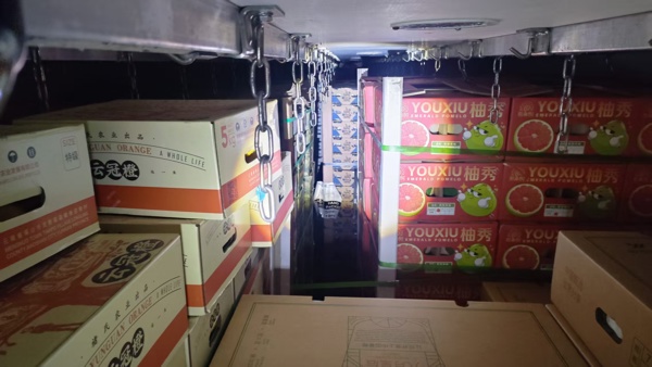 11月23日,一辆车牌号为冀AXXX的六型黄牌货车驶入收费站出口车道,司机称车辆装载鲜活农产品,申请绿通减免。验货人员接到查验通知后,严格按照绿通查验流程,对车辆进行深度全面检查。经查发现,该车除装载部分鲜活农产品外,还混装了蓝莓、百香果饮品等《鲜活农产品品种目录》外产品,且非目录产品占比已超过20%,不符合绿通减免政策要求。验货人员向司乘人员详细解读了绿通政策相关规定,耐心说明违规混装的认定标准,经过反复沟通,司乘人员对查验结果表示认可,现场补缴通行费4581元。