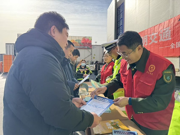 为切实保障首衡市场及周边道路通行安全,有效提升市场商户、货运司机等群体的交通安全意识,近日,高碑店收费站联合高速交警涿州大队,共同走进首衡农产品批发市场,开展“安全驾驶不松懈,畅通出行护民生”主题交通安全宣传活动。