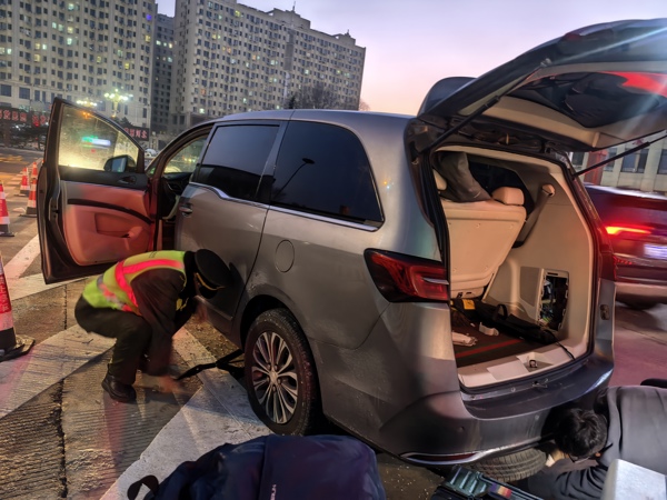 12月14日下午,涿州收费站的广场上上演了一幕暖心场景。一辆载有外地游客的小汽车因车胎漏气突然滞留,无法正常行驶,正当车上游客焦急万分时,涿州站的收费员第一时间发现了这一情况,主动上前伸出援手。