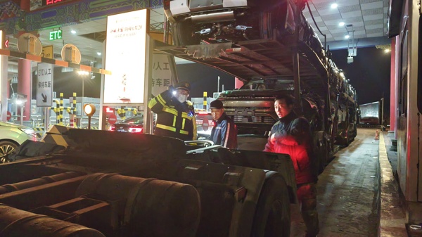 物资到位,技术助力提效率。综合办主任李莹莹、设备员肖松携便携发卡设备现场支援,并通过“大喇叭”语音循环提示,引导车辆有序排队前行。人力物力齐上阵,展现出色团队协作与高效执行力,保畅战斗力全面“满格”。
