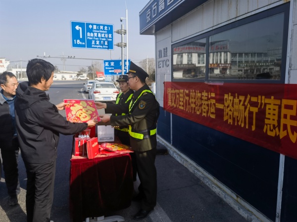 为确保春运收费站口滞留车辆引导和服务工作,在收费车道、收费广场积极开展暖心志愿服务,为滞留司乘送上“京石高速关怀包”,用实实在在的“京石关怀”温暖司乘旅途。