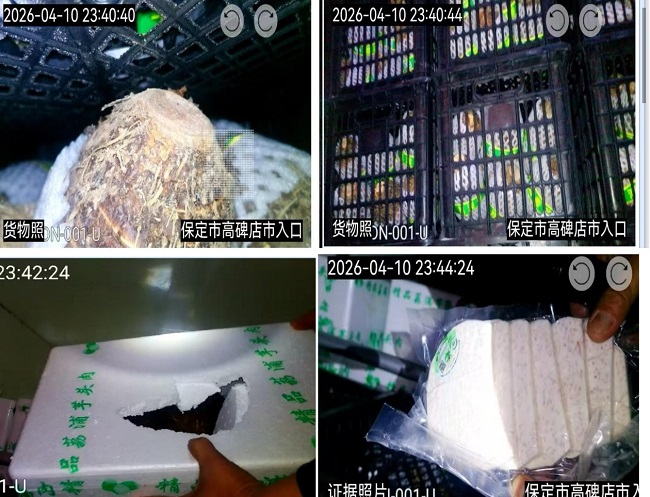 4月10日中班,一辆装载芋头的厢式货车驶入高碑店站绿通专用通道,值班站长韩玉民第一时间来到货车旁开展查验工作,只见车厢外层整齐摆放着装满新鲜芋头的篮筐,芋头品相完好,看似完全符合绿通车鲜活农产品运输标准。可多年的一线工作经验,让韩玉民养成了细致入微、绝不敷衍的查验习惯,他仔细观察车厢内部结构,发现外层篮筐之下,竟码放着大量白色泡沫箱,与外层的篮筐装载方式截然不同,这一细微差别,让他心中多了一份警惕。