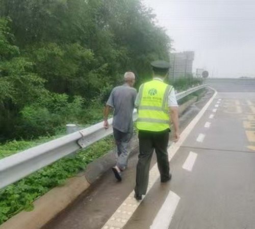 拦截行人的小王更“较真”。“大爷,高速公路不允许行人进入。”他被晒得眯起眼睛,却坚持原则:“安全底线不能破”。