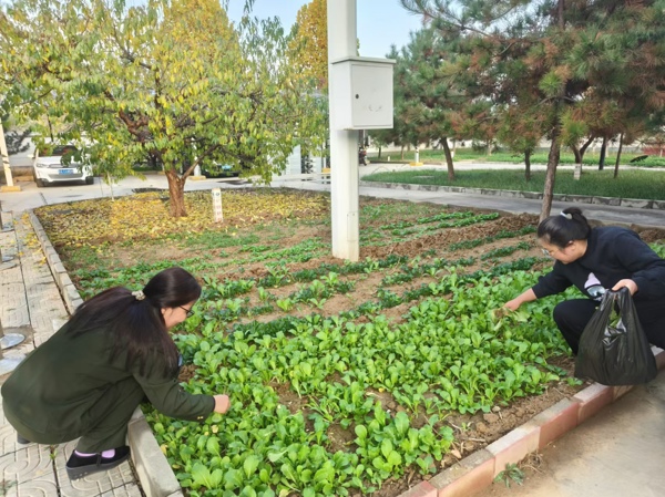 走进菜园,映入眼帘的是一排排整齐划一的小白菜,它们在冬日的阳光下、在落叶的衬托下显得格外耀眼。这些小白菜是清苑站全体员工共同努力的结果,从播种到收获,每一颗白菜都承载着大家的汗水与希望。