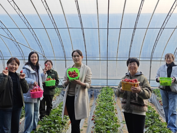 走进草莓园,女职工们三五成群,提篮执剪,在翠叶红果间寻觅春日馈赠。活动现场架起文旅短视频拍摄专区,镜头记录下她们俯身采摘的专注侧影、发现饱满果实时绽放的笑靥,以及竹篮渐满时高举成果的雀跃身影。红莓映衬巾帼风采,光影交织中,采摘野趣与高速沿线的田园风光被剪辑成短旅推介视频,通过企业抖音号“京石娇颜有点甜”快速推送,吸引周边群众“跟着高速去采摘”,助农便民,引流增收。