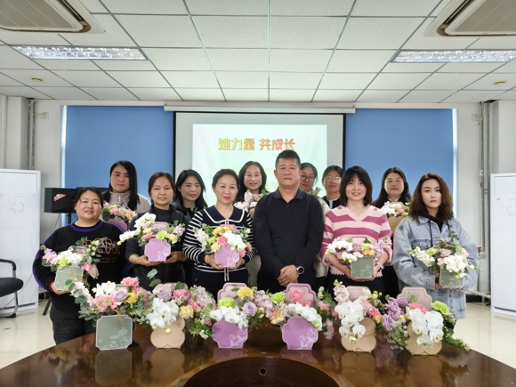 活动伊始,主持人热情开场,详细介绍了活动流程以及主讲老师和花艺老师。随后,领导发表讲话,向全体女职工致以节日的问候和美好的祝福,肯定了她们在工作中的辛勤付出和卓越贡献,鼓励大家在新的一年里继续展现“她力量”,与企业共同成长。