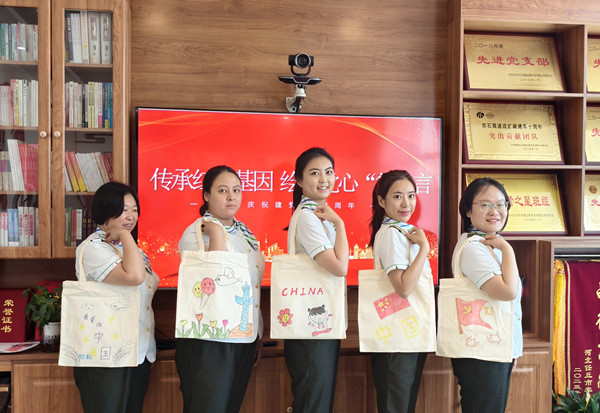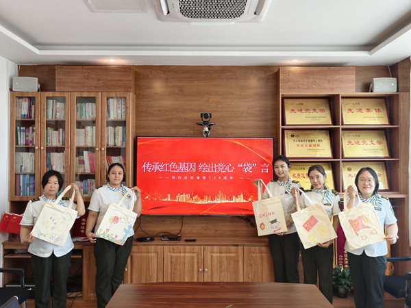 活动中,员工们互帮互助、共同进步。绘画技艺娴熟的员工主动分享绘画技巧,耐心地指导不太熟练的同事,帮助他们完善作品。在这种相互学习、相互借鉴的良好氛围中,原本朴素无华的帆布包逐渐变得色彩斑斓、独具特色。每一个帆布包都像是一个小小的红色载体,承载着员工们对党的深厚情感和美好祝愿。