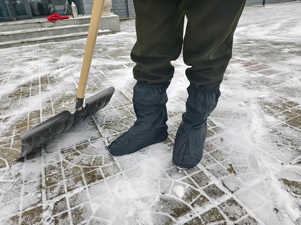 此次采购的鞋套兼具防水、防滑、耐磨特性,能够有效应对积雪、结冰路面,避免员工在户外作业时滑倒受伤。发放现场,分工会工作人员有序组织,员工们领到鞋套后纷纷当场换上,随即投身到车道除雪保畅工作中。皑皑白雪里,身着反光背心、脚踩防水鞋套的员工们手持铁锹、雪推板,分工协作、干劲十足,全力清扫车道内的积雪。防滑鞋套让大家在湿滑的路面上行动自如,大大提升了除雪效率,原本被积雪覆盖的车道很快便恢复了畅通。