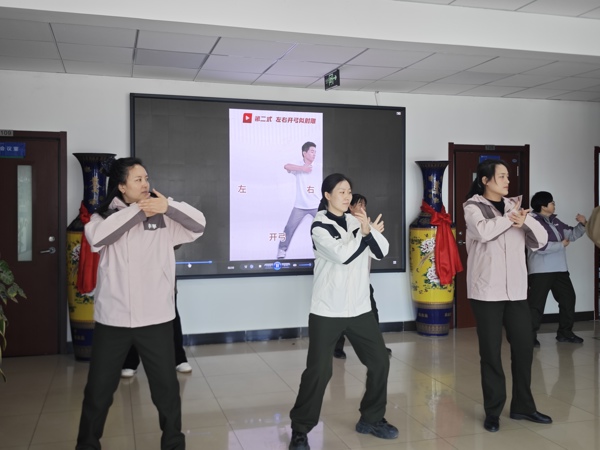 为积极响应全民健身号召,切实关爱女职工身心健康,活动特别安排了当下备受关注的“八段锦”集体学习环节。针对女职工普遍存在因久坐岗亭、长期伏案引发的颈椎、腰椎疲劳及用眼过度等问题,此次教学选取国家体育总局推广版八段锦,这套功法动作规范、口令清晰,既适合初学者入门,也便于长期坚持习练。