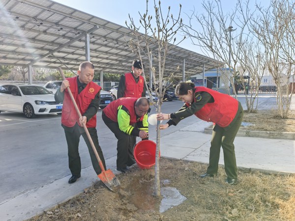 活动现场气氛热烈,秩序井然。大家热情高涨,分工协作,配合十分默契。严格依照植树的要领,挥锹挖坑、扶苗填土、踩实加固、浇水定根,每一道工序都有条不紊、认真细致。党员干部以身作则、率先垂范,充分发挥先锋模范作用;青年职工朝气蓬勃、干劲十足,主动担当、积极作为。大家以实干践行生态理念,用双手种下片片新绿,让一株株树苗在风中挺立、错落有致,为春日的站区注入了蓬勃生机。