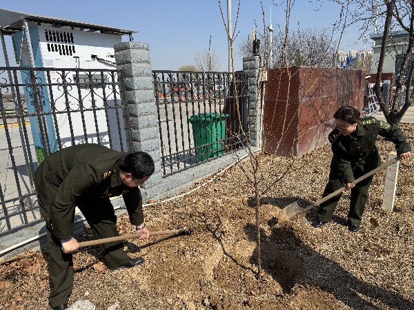 活动当天,职工们早早集结于站区空地,手持铁锹、水桶,整装待发。今年植树活动充分听取职工建议,选定寓意幸福吉祥的杏树与象征红红火火的石榴树进行栽植。大家纷纷表示,这两类树种既契合站区美化需求,又承载着对工作顺遂、生活美满的美好祝愿,赋予了植树活动更深层次的意义。另外为了给站区增添色彩,在绿化区种植花期长久的月季,彰显文明窗口的温度与活力。