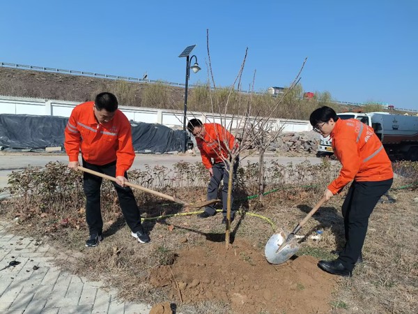 在栽种过程中,工区技术骨干现场指导,从树苗间距、栽种深度到浇水频次,细致讲解种植要点,确保花草、树木成活率。经过辛勤劳作,一株株新苗、一丛丛花草错落有致地扎根院落,为初春的工区披上了一层清新的绿装,勾勒出生态宜居的美丽画卷。