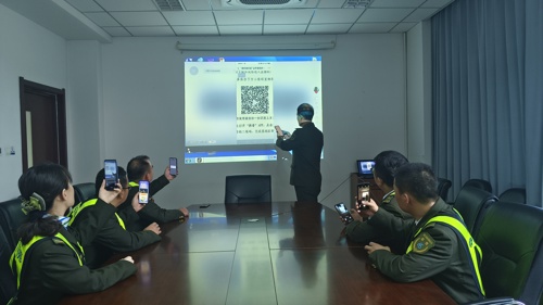 “参与学习的操作流程十分便捷:大家只需截屏保存活动专属二维码,打开抖音APP“扫一扫”功能完成签到,即可进入直播间观看,连续签到5天并观看视频后就可以获得防灾减灾安全优秀学员证书,让我们一起签到,一起获得证书,加油!”学习活动开始前,副站长郭永发一边讲解一边带领参与员工进行签到活动。