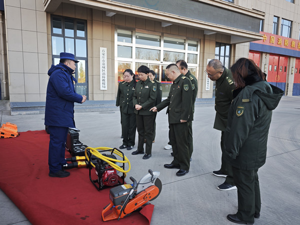 在消防员的带领下,员工们先后参观了消防指挥中心、宿舍、消防车、器材装备、党团活动室等区域。从“威武”的水罐消防车、抢险救援车到各类破拆工具、防毒面具、隔热服等专业装备,消防员逐一讲解其功能用途、操作方法及维护保养要点,并重点演示了空气呼吸器佩戴、灭火器规范使用、消火栓、消防水带等基本器材的操作要求和使用方法。大家听得认真、看得仔细,不时提问交流,现场学习氛围浓厚。